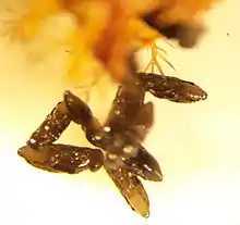 | Pediobius foveolatus pupae from Mexican bean beetle mummy | |