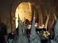 In addition to the image of Jesus, three wooden crosses are carried by the mayordomos (stewards) and one penitent brother.[2]