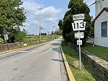 Pennsylvania Route 113 Alternate Truck is a truck route of PA 113, bypassing a weight-restricted bridge over a branch of the Skippack Creek in Skippack Township, on which trucks over 34 tons and combination loads over 40 tons are prohibited. The route originally followed PA 29 and PA 73, but in 2019, it was rerouted along PA 29, Plank Road, and PA 73 due to a weight-restricted bridge on PA 73 west of Plank Road. It was signed in 2013.[18][19]
