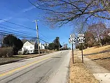 The road runs into business areas and crosses MacDade Boulevard in the community of Folsom. PA 420 continues through suburban development, curving to the northwest and passing near more residential neighborhoods. The route enters the borough of Morton, where it passes businesses. PA 420 becomes Woodland Avenue as it intersects Morton Avenue immediately before a grade crossing with SEPTA's Media/Wawa Line east of the Morton station. Past this, the road heads through commercial development with some homes to the northeast, continuing into Springfield Township. The route heads between woods to the west and residential areas to the east, gaining a second southbound lane as it heads into business areas and crosses Baltimore Pike. Past this, PA 420 becomes two lanes again and continues through suburban areas of homes. The road gains a center left-turn lane and passes businesses as it comes to a grade crossing with SEPTA's Route 101 trolley line west of the Woodland Avenue station. The route becomes two lanes again and passes near more homes with some patches of woods. PA 420 curves more to the west and comes to its northern terminus at an intersection with PA 320 a short distance to the south of that route's interchange with US 1.[2][3]