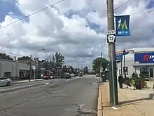 At the Laurel Avenue intersection, PA 73 becomes Cottman Avenue and turns into a three-lane road with one eastbound lane and two westbound lane that forms the border between the city of Philadelphia in Philadelphia County to the northeast and Cheltenham Township in Montgomery County to the southwest, coming to the entrance to the Fox Chase Cancer Center to the northeast of the road. The route passes between Burholme Park in Philadelphia and homes in Cheltenham Township. The road passes more homes and fully enters Philadelphia upon passing under SEPTA's Fox Chase Line south of the Ryers station in the Ryers neighborhood. PA 73 heads into Northeast Philadelphia and becomes a four-lane road as it runs through commercial areas, reaching a bridge over CSX's Trenton Subdivision railroad line.[4][7] The route intersects Rising Sun Avenue and PA 232 (Oxford Avenue) at a junction locally known as Five Points.[4][7][8] The road heads past a mix of homes and businesses, running between the Burholme neighborhood to the northeast and the Lawncrest neighborhood to the southwest. After crossing Algon Avenue, the route passes to the southwest of Northeast High School. PA 73 gains a center left-turn lane and crosses Castor Avenue near the Rhawnhurst neighborhood. The route continues past several shopping centers and intersects Bustleton Avenue, at which point it passes southwest of Roosevelt Mall. PA 73 comes to an interchange with US 1 (Roosevelt Boulevard), intersecting the local lanes at-grade and passing over the express lanes.[4][7]