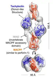 3. 1 2 3 4 5 6 7 Giglio ML, Ituarte S, Milesi V, Dreon MS, Brola TR, Caramelo J, et al. (August 2020). "Exaptation of two ancient immune proteins into a new dimeric pore-forming toxin in snails". Journal of Structural Biology. 211 (2): 107531. doi:10.1016/j.jsb.2020.107531. hdl:11336/143650. PMID 32446810. S2CID 218873723.