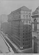 The Phenix (aka Phoenix) Building was an office building in Chicago designed by the noted Chicago architectural firm of Burnham and Root. It was built by the Phenix Mutual Fire Insurance Company of Brooklyn, New York and occupied the block fronting Jackson Boulevard between Pacific Avenue (now LaSalle Street) and Clark Street. When completed in 1887, the building was seen as "the latest addition to Chicago's magnificent architectural structures".[2] It was later owned by the Western Union Telegraph Company, who sold the building to the manufacturer and philanthropist Frederick C. Austin (1853-1931) in 1922.[3] Austin donated it to Northwestern University in 1929 with the understanding that the income derived from it would "provide scholarships for the training of business executives".[4] The building was demolished in 1957 and replaced by what today is known as the TransUnion Building, a twenty-four story office building designed by A. Epstein and Sons.[5]