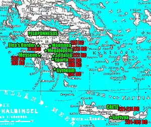 Relevant geographical locations, during Philopoemen's life.