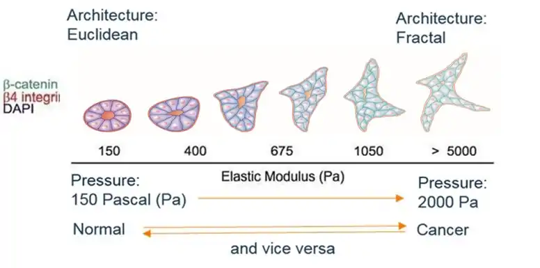 Fractality is a means that evolution has found to minimize the energy used to distribute resources. Remember that cancer uses a source of energy different from other tissues, less efficient in yield.[49][50][51][52][53]