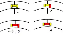 The actuation process of the inchworm motor is a multistep cyclical process:[2]