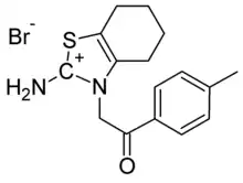 • [Br-].Cc1ccc(cc1)C(=O)Cn2[c+](N)sc3CCCCc23