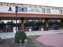 The Pike Road Public Library of the Montgomery City-County Public Library is located in Pike Road.[7][13] It is located in the Pike Road Station shopping center near the intersection of Pike and Vaughn Roads.[14]