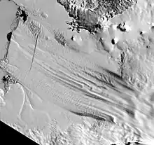 - NASA image from October 2011 showing a large crack across the glacier
