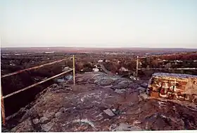 HA-67 was a Nike 1B defensive missile base which operated from 1956 through March 1961 on the Plainville side of the rock near Loon Lake, southeast of the summit. The base is no longer in existence, with little remaining other than a parking lot and a few buildings which have been reduced to rubble.[1] Further southeast is a small (0.4 mi/600 m wide) traprock quarry.