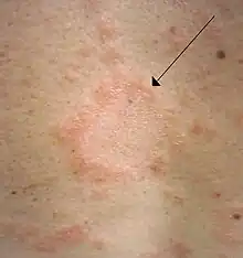 | Differential diagnosis | Tinea corporis, viral rash, pityriasis versicolor, nummular eczema[3] |