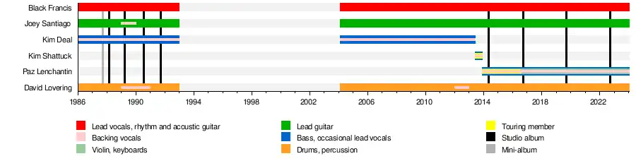 ![]() The Pixies performing in 2023. From left: Joey Santiago, Black Francis, Paz Lenchantin, David Lovering | |