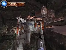 PlaneShift takes place inside a colossal stalactite named Yliakum.[5] Players begin in the main city, Hydlaa, where they will start their journey. PlaneShift has 9 playable races,[6] each of which have their own homelands and characteristics. The races feature standard fantasy types, like elves and dwarves, but also humanoids made of rock and winged amphibians. Though set underground, life is possible because a crystal named the Azure Sun draws light from the surface of the planet.
