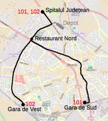 Map of the former routes. Nowadays only routes 101 and 102 exist.