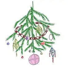 In Poland, the podłaźniczka was known mainly in the Goral Lands.[7] The podłaźniczka was made in various ways, it could be a conifer tree,[8] or conifer tree treetop[9] turned upside down, a branch of a conifer,[5] or a riddle (przetak) ring to which green twigs were attached.[5] So prepared decoration was attached to the beam,[8] often directly above the Christmas table,[8] or in a sacred corner.[9] Podłaźniczka is considered to be the prototype of modern Christmas tree in Poland.[10]