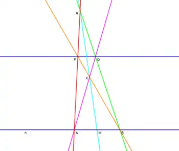 - A parallel is then constructed according to the previous parallel construction involving the collinear bisected segment.