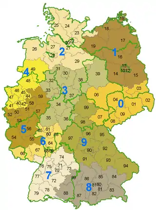 The 1993 system has geographic zones on the first (Postleitzonen) and on the second level (Postleitregion), e.g., 1 is North East Germany, and 10 is a zone in the inner city of Berlin.