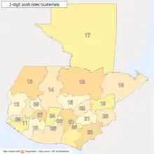 2-digit postcode map of Guatemala