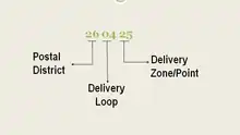 In the example above, the digits "15" refer to the delivery office in Diego Martin; "01" to a certain delivery route served by that office; and "10" to a certain building or zone along that delivery route.[4]