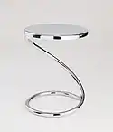 It was of the most expensive of Henningsen's lamps to produce because the paint and varnish work required 130 steps. It was discontinued in 1991.[68] This lamp was made up of ten lacquered metal shades. Each shade has four different colors: white, chrome, orange, and blue. The center rod that holds the bulb could be adjusted up and down. This allows the user to adjust the color temperature from cool to warm by moving the center rod. |