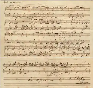 The untitled Presto con leggierezza in A♭ major was composed in 1834 as a gift for Pierre Wolff and published in Geneva in 1918.[19][20] Sometimes known as Prelude No. 26, the piece is very short and generally bright in tone.