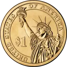 - ↑ The United States Mint. "The United States Mint Presidential $1 Coin Program". usmint.gov. Retrieved 2010-11-03.