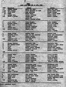 - Dinner—tea, bread, margarine, pressed luncheon meat.[13]