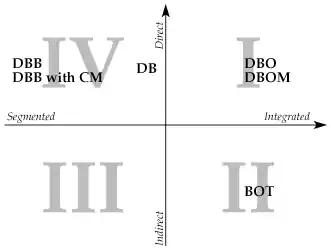 - Design–build–finance–operate-maintain (DBFOM)[10][11] also referred to as Design–build–finance–maintain-operate (DBFMO)[12][13] is a project delivery method very similar to BOOT except that there is no actual ownership transfer. Moreover, the contractor assumes the risk of financing until the end of the contract period. The owner then assumes the responsibility for maintenance and operation. This model is extensively used in specific infrastructure projects such as toll roads. The private construction company is responsible for the design and construction of a piece of infrastructure for the government, which is the true owner. Moreover, the private entity has the responsibility to raise finance during the construction and the exploitation period.[14] Usually, the public sector begins payments to the private sector for use of the asset post-construction. This is the most commonly used model in the EU according to the European Court of Auditors.[15]