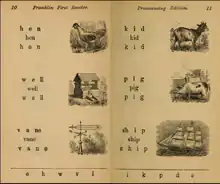 - Hillard, G. S.; Campbell, L.J. (1873). Leigh, Edwin (ed.). Franklin Primer or First Reader – Leigh's Pronouncing Edition. New York: Taintor Brothers, Merrill, and Company.