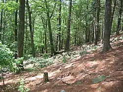 Waltham acquired approximately 75 acres (30 ha) for the park from private landowners in 1893. This area comprised the two peaks and their immediate surroundings. Additional land was purchased over several decades and the park reached 219 acres (89 ha) in 1927.[2] It was improved with trails,[3] picnic areas, fences and other amenities and generally well maintained through the first half of the 20th century. Vegetation management included the clearing of dead trees and underbrush, as well as the planting of thousands of trees.[4] As a result of additional land purchases, the parked reached 250 acres by 1997.[2] Its current size is 273 acres.[5]