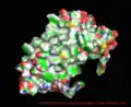 Proteorhodopsin (also known as pRhodopsin) is a family of transmembrane proteins that use retinal as a chromophore for light-mediated functionality, in this case, a proton pump. pRhodopsin is found in marine planktonic bacteria, archaea and eukaryotes (protae), but was first discovered in bacteria.[1][2][3][4]