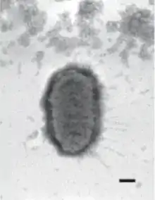 | Electron micrograph of Proteus penneri. Bar represents 200nm. | |