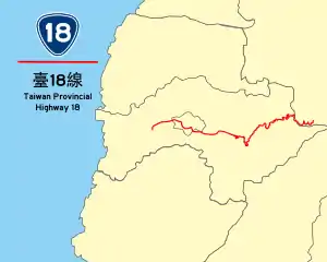 Taiwan Provincial Highway No. 18 is a highway between Taibao in Chiayi County to Provincial Highway No. 21 at Tatajia (Tataka) in Yushan National Park. It is also called the New Central Cross-Island Highway(新中橫公路) and Alishan Highway(阿里山公路). The highway connects Chiayi City and the rest of Western Taiwan to Alishan National Scenic Area and Yushan National Park. The overall length of the highway is 108.559 km.[1]