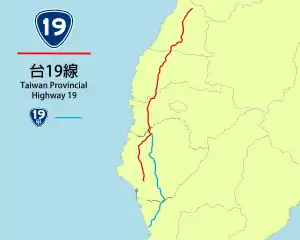 Provincial Highway 19 (PH 19, Chinese: 台19線) is a north–south highway from Changhua City in Changhua County to Yongkang in Tainan City. The highway is known as Central Highway (中央公路). The highway lies between the coastal PH 17 and the inland PH 1 which serves many of the major cities in central and southern Taiwan. The total length of the highway is 140.195 kilometres (87.113 mi).[1]