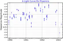 Psi Phoenicis (ψ Phoenicis) is a star in the constellation Phoenix. Its apparent magnitude varies from 4.3 to 4.5 with a period of about 30 days[3] and it is approximately 342 light years away based on parallax.[1]