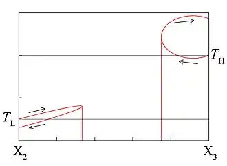 - a heat exchanger X1 where heat is released to the surroundings at room temperature