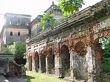 The Puthia Raj family was created by the Mughals in the early seventeenth century and is one of the oldest feudal estates of Bengal. A lord named Nilambar received the title of Raja (King) from the Emperor Jahangir (reigned 1605-1627 CE). In 1744, the region was divided between King Nilambar's sons and the Puthia Raj family was born. The family built lavish palaces and temples, such as the Puthia Temple Complex, and were noted philanthropists. Later the Puthia Raj estate was maintained by Lahiris until the abolition of the zamindari system under the newly formed democratic Government of East Pakistan after passing of the East Bengal State Acquisition and Tenancy Act of 1950, just two years after the fall of the British Raj. The palaces are currently administered by the Government of Bangladesh.[1]