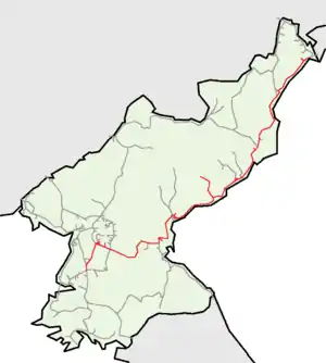 357.1 5.0 186.5 5.0 Hongwŏn 홍원 (洪原) Chŏnjin 전진 (前津)