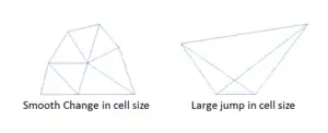 The change in size should also be smooth. There should not be sudden jumps in the size of the cell because this may cause erroneous results at nearby nodes.