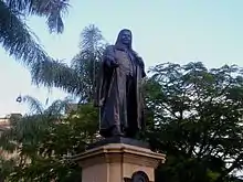 A bronze statue of TJ Ryan, designed by Australian sculptor Bertram MacKennal and erected by public subscription, was unveiled in the gardens in 1925. The sandstone base was provided by the Brisbane City Council.[1]