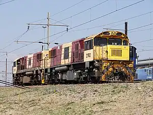 {{cite journal}}: Cite journal requires|journal=(help) - ↑ Queensland Rail (February 1986). "Fact Sheet No. 9 Main Line Electrification Project Special Edition" (1): 1.