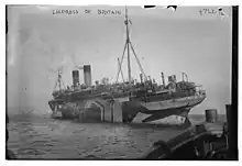 Less than two weeks after disaster struck the RMS Titanic in the North Atlantic, Empress of Britain also struck an iceberg on 26 April 1912; but the reported damage was only slight.[8]