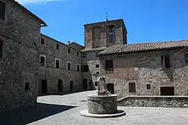 The main landmark of Radicofani is its Rocca (Castle), of Carolingian origin, documented since 978 as the Castle of Ghino di Tacco. Occupying the highest point of a hill, at 896 metres (2,940 ft), it was restored after the conquest from the Grand Duchy of Tuscany (1560–67). It has two lines of walls: the external one has a pentagonal shape, while the inner one is triangular, with three ruined towers at each corner and a cassero (donjon) which can be visited.