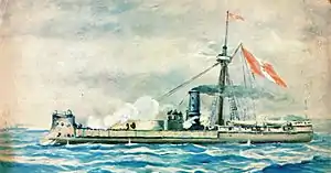 Since 1878, the commander of the Huáscar was the frigate captain Gregorio Pérez. On March 24, 1879, Miguel Grau, who was a deputy of the Paita Province, was appointed commander of the Huáscar, assuming command of the ship on March 28.[2] On May 10, 1879, 3 naval divisions were formed. The 1st Division, under the command of Captain Miguel Grau, was made up of the Huáscar, the ironclad Independencia, and the Chalaco.