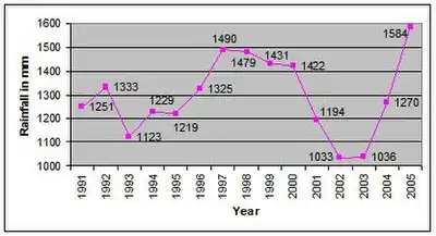 - ↑ "Rainfall". Online Webpage of the Department of Agriculture. Government of Karnataka. Retrieved 26 June 2007.