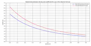 This improvement includes a friction coefficient, , and was a result of research and experiments by Iribarren and his colleagues during the period between the first (1938) and final (1965) publication of the Iribarren formula.[41] He had undertaken wave flume experiments and research into factors including the type of wave breaking, wave run-up and run-down, friction and interlocking between units, and the types of failure possible in breakwaters in the intervening period.[47] Iribarren proposed that the force of a wave can be approximated by: