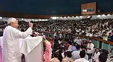 Chief Minister of Bihar Nitish Kumar addressing the crowd on the Memorial Celebration of Sher-e-Bihar Shri Ram Lakhan Singh Yadav at Krishna Memorial Hall, Patna to commemorate his 103rd birth anniversary