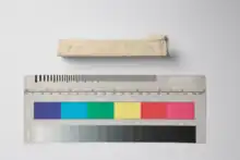 The main discovery in the box is the papyri and the reed pens, which were probably used to write the texts. The text is written in hieratic, with a structure of horizontal and vertical lines. The papyri is mostly in fragments and conservation efforts have been used to save what remains. The papyri fragments were taken to the University College London, where Petrie and Percy Newberry unrolled some of the text onto glass, and used beeswax, in an attempt to hold the fragmentary pieces together.[9] Alan Gardiner disagreed with this method and convinced Petrie to send the papyri to Hugo Ibscher in Berlin. Ibscher's conservation work took place in both London and Berlin. He laid some of the texts onto gelatin and placed them between two pieces of glass. Gardiner and Ibscher catalogued and numbered the papyri for the British Museum and the Berlin Egyptian Museum.