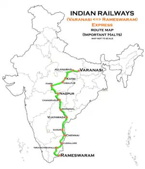 It operates as train number 22535 from Rameswaram to Banaras and as train number 22536 in the reverse direction, serving the states of Tamil Nadu, Andhra Pradesh, Telangana, Maharashtra, Madhya Pradesh & Uttar Pradesh.[1]