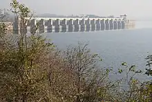 The Rana Pratap Sagar Dam is a gravity masonry dam of 53.8 metres (177 ft) height built on the Chambal River at Rawatbhata in Rajasthan in India. It is part of integrated scheme of a cascade development of the river involving four projects starting with the Gandhi Sagar Dam in the upstream reach (48 kilometres (30 mi) upstream) in Madhya Pradesh and the Jawahar Sagar Dam on the downstream (28 kilometres (17 mi) downstream) with a terminal structure of the Kota Barrage (28 kilometres (17 mi) further downstream) in Rajasthan for irrigation.[1][2]